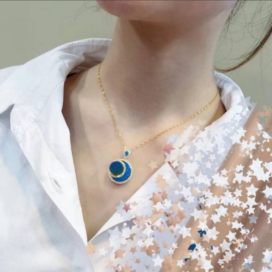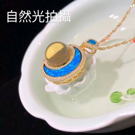 包覆藍珀使用925銀鍍金框,925銀鍍金鏈。