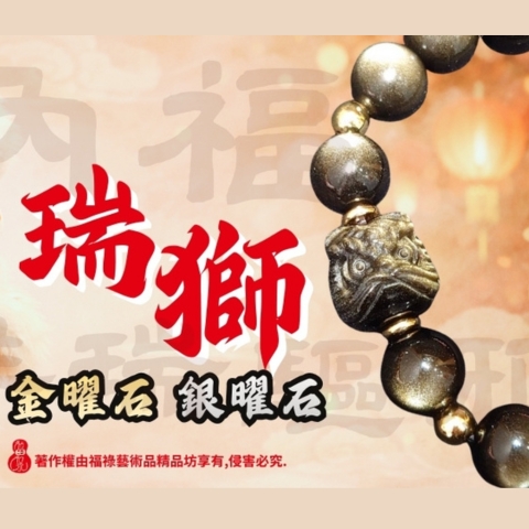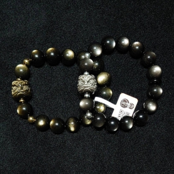獅獅順利金(銀)曜石手珠串