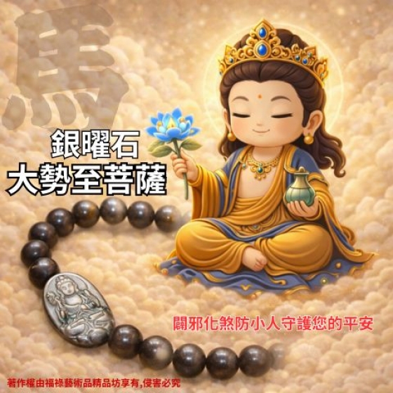 • 8mm銀曜石大勢至菩薩手珠串(馬守護神)