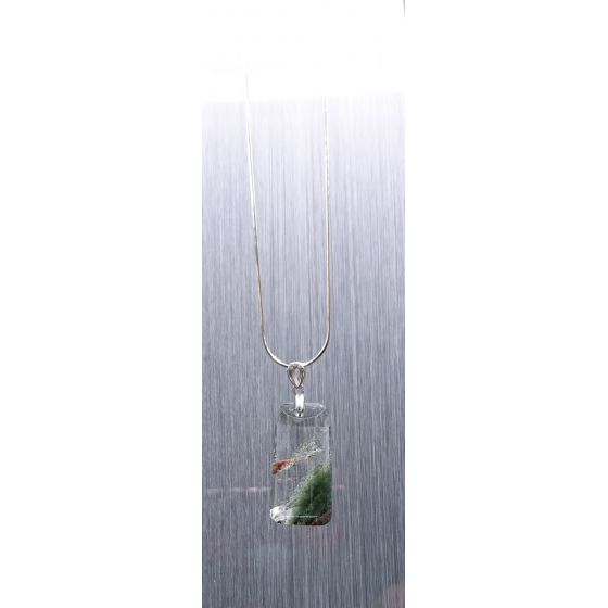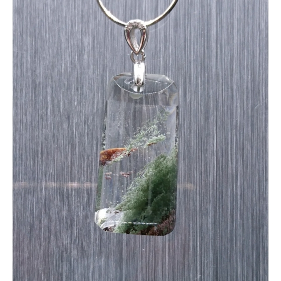 幽靈水晶,又稱異像水晶。異象水晶是指在水晶的生長過程中,包含了不同顏色的火山泥等礦物質,在通透的白水晶里,浮現如雲霧、水草、漩渦甚至金字塔等天然異象,內包物顏色為綠色的則稱為綠幽靈水晶,同樣道理,因火山泥灰顏色的改變,也會形成紅幽靈、白幽靈、紫幽靈、灰幽靈水晶等。