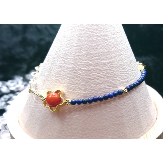 藍晶石2.5mm,紅瑪瑙6.5mm,14K金無限愛心鍊