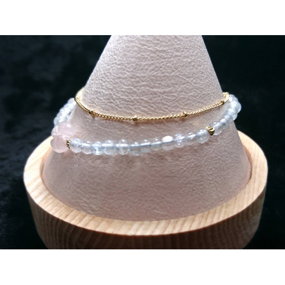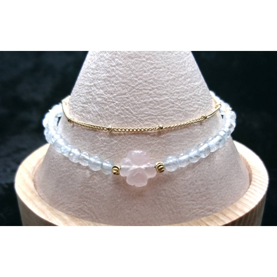 粉晶幸運草10mm,海藍寶4mm,3mm隔珠14K金+尾鍊