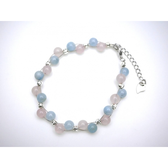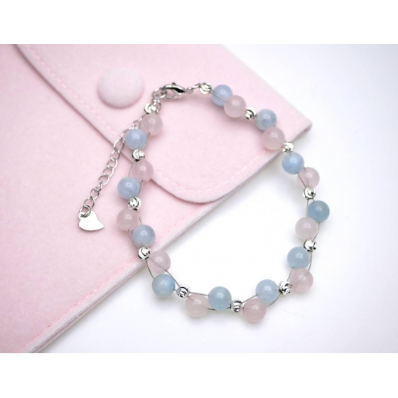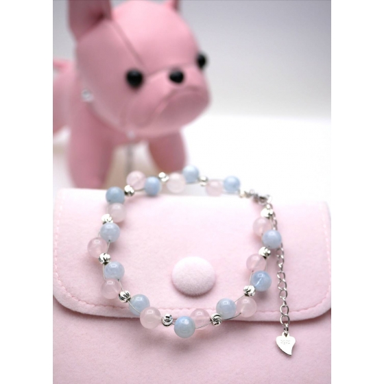 海藍寶6.5mm,粉水晶6.5mm,925銀南瓜隔珠+尾鍊